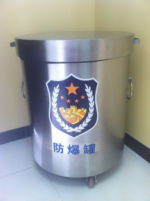 防爆罐(桶型)是一種用于盛放爆炸裝置的器材,并可以弱化爆炸裝置的爆炸威力達到保護人員和財物的目的。 室內(nèi)使用,要求空間高度6米以上。 它由三重結(jié)構(gòu),四種抗爆材料組合而成,外包不銹鋼。上有抗爆蓋。 三重結(jié)構(gòu)為:外罐、花罐、填充層(使用年限需五年進行更換); 四種抗爆材料為:特種抗爆、抗老化、耐火抗爆膠、特制蓬松層。 耐火:PVC片、特制鋼板。 組件為:防爆蓋一件、罐一件、牽引鉤繩一根。